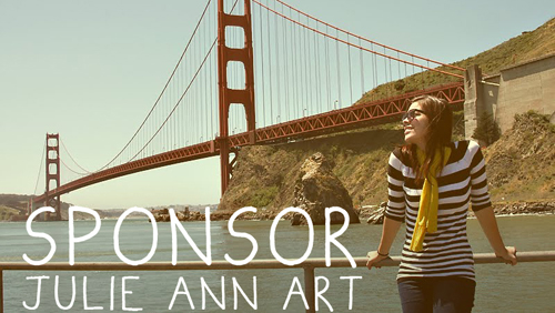 On top of that, Julie Ann Art has 1,400+ Facebook and Twitter fans! Sponsors will be promoted through Facebook updates and Twitter tweets, on top of blog page views.