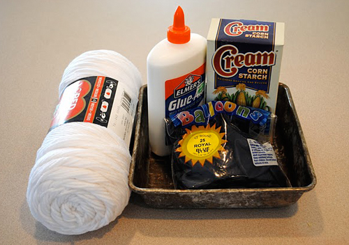 Using round balloons means you’ll have perfect circle chandeliers, you can use any kind of balloon but I wanted mine circular. Blow up how ever many balloons you want for chandeliers and tie yarn around the top for hanging.