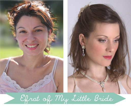 My name is Efrat Davidsohn, I have been designing jewelry for over 15 years and I run a small vintage style boutique shop in the Soho of Tel Aviv. I also run a virtual bridal shop on Etsy called MyLitttleBride. I make Bridal jewelry and accessories, and I design and sew my own bridal dresses. My studio is in a tiny room inside my shop and there I have all my ideas, materials and good music. I especially love working with my hands, creating new jewelry and applying all kind of different materials with different colors. I never know what is going to happen next, while sitting down to make them, or how it’s going to end up.