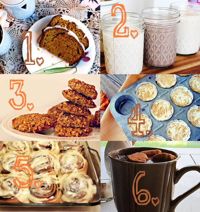 It has been a busy few days as I prepare for the release of my holiday line next week (here’s hoping!). It’s hard to think about Christmas, or even Fall for that matter, when it’s 90 degrees outside. But I’m still determined to enjoy a few Fall staples this time of year. I attempted a new apple recipe this morning, it’s actually in the oven right now. That was supposed to be my recipe post today but I’m honestly not sure how it will turn out. I’ll have to get back to you on that. ;] For now I wanted to share some of my favorite Fall-inspired recipes I’ve seen on some of my favorite blogs lately. They have left me feeling inspired and I hope they do the same for you.
